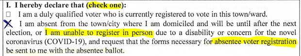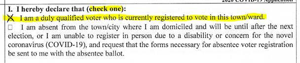 If you are currently a registered voter in Rindge, check ONLY the 1st of the two boxes.